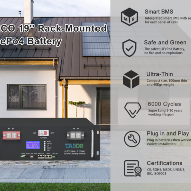 Introducing the Taico 48V LiFePO4 Lithium Ion Battery series, an advanced power solution designed to meet the diverse energy needs of modern applications. Whether you’re setting up a residential solar system, upgrading your RV power system, or seeking reliable energy storage for industrial use, Taico offers a robust and versatile range of batteries to suit your requirements.